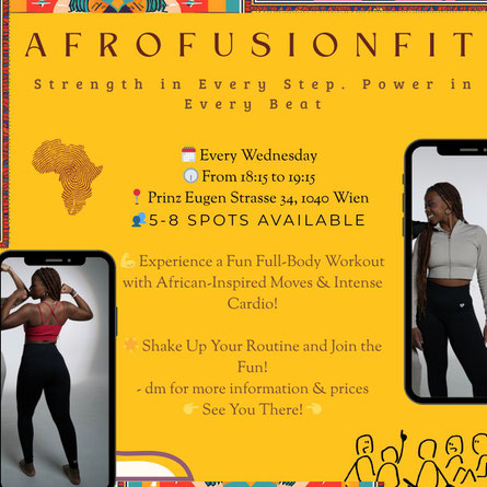Inspiriert von Afrobeats, Soca, traditionellem afrikanischen Tanz und globalen Rhythmen trainierst du nicht nur deinen Körper, sondern stärkst auch Geist und Seele.